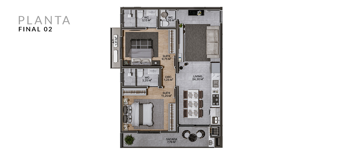 Localizado a apenas 300 metros da praia, na principal avenida de Navegantes, este empreendimento oferece o equilíbrio perfeito entre acessibilidade e conforto. As unidades foram cuidadosamente projetadas para que você possa desfrutar a vida com praticidade e estilo.